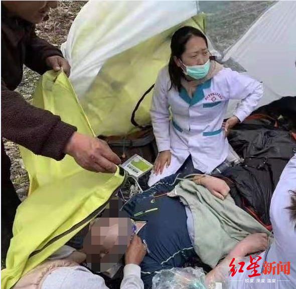 日隆沟海拔5500米,距贡嘎乡政府所在地数十公里,王鹏一行换乘汽车、摩托车、马匹等交通工具,徒步翻越一座海拔6000多米的雪山,历时5个小时,于当日13时30分到达救援地点。疑似发生高反的驴友睡在帐篷内,已经失去意识,情况危急。