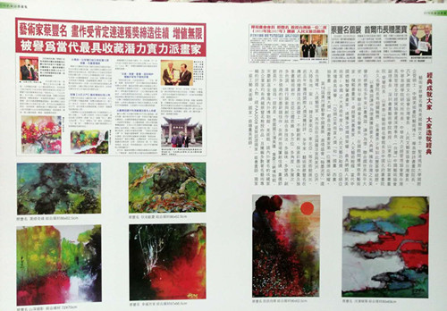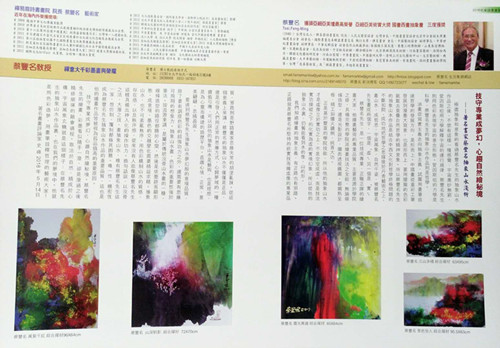 多年来,艺术家蔡丰名教授在传统的绘画技法的基础上,不断创新,探索彩墨山水画及抽象画艺术创作,并从立体思维、多方位、多角度、多层次、多色调、进行探索与创作结合多技法、多韵味、多变通、创作出多情趣的彩墨新韵佳作,在两岸拍场屡创佳绩,画价节节高升。