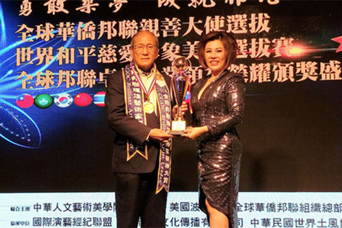 国际时报讯(记者李广义综合报道):由美国全球华侨联邦组织总部、中华人文艺术美学关怀联合会共同主办的全球华侨邦联亲善大使选拔、世界和平慈爱形象美后选拔赛、全球卓越企业领袖荣耀颁奖盛典,12月16日,在台北隆重举行,艺术家蔡丰名获得最高大奖——2018全球联邦辉煌艺术家领袖大奖。