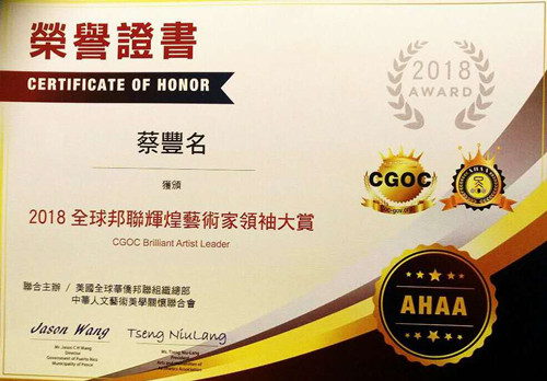 艺术家蔡丰名荣获2018全球联邦辉煌艺术家领袖大奖